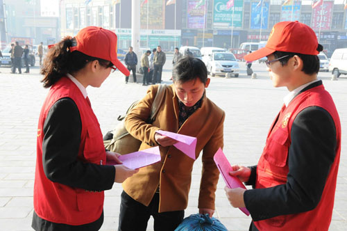 春节过后,大批农民工陆续离乡进城。3月2日,县人民法院组织青年志愿者在长途汽车站附近设立志愿服务台,为农民工兄弟开展“农民工讨薪维权”宣传活动。 志愿者们围绕着农民工所关注的与用人单位、包工头之间的劳动争议、劳资纠纷等问题,着重提醒农民工兄弟外出务工时一定要签订劳动合同、注意保管好自己的工资表、工作牌等工作证明,一旦发生纠纷,应及时持合同、劳动时间依据或欠款凭据等资料到劳动保障监察部门投诉或到法院起诉。此外,还提醒农民工兄弟在维权过程中要依靠法律理性维权,避免有过激、冲动行为。 宣传活动中,志愿者们与前来咨询的农民工兄弟积极互动,发放“致农民工兄弟一封信”200余份、接待农民工兄弟30余人次、解答疑问20多起,切实增强了农民工外出务工的法治意识和自我保护能力,受到了社会的一致好评。