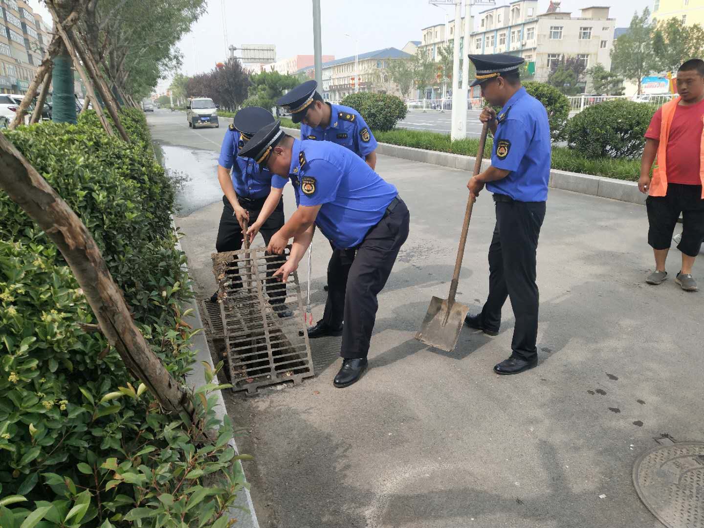 三、认真排查,防患未然。按照“三服务”担当作为大学习大讨论大提升活动总体要求,把防汛责任切实担当起来,自7月10日起,要求12个市容管理执法大队、城乡环卫所全员上路进行大排查,以网格为单位持续开展防汛隐患排查整治工作,补短板、堵漏洞、强弱项,对街面上井盖周边、下水道入口垃圾、淤泥及时清理整改,以确保大雨时路面排水通畅,防止汛期城市内涝。