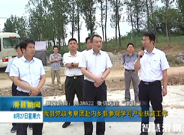 8月25日至26日,安阳市委常委、县委书记董良鸿,县领导于东峰、杨振宇、赵继芳带领考察团赴南阳市内乡县,参观学习产业扶贫工作;南阳市副市长张明体,内乡县县领导李长江、杨曙光等陪同参观。