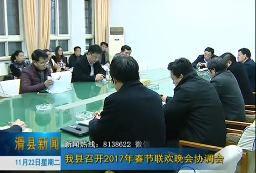 11月21日,我县召开2017年春节联欢晚会协调会,县委常委、宣传部长杨振宇,县政府党组成员、政府办公室主任赵自勋参加会议。
