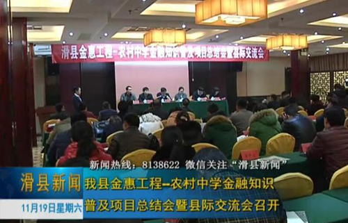 11月18日,我县金惠工程农村中学金融知识普及项目总结会暨县际交流会召开,中国金融教育发展基金会副理事长王大伟,人民银行安阳市中心支行副行长郭金生,副县长许业参加会议。