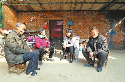 刘杰(右二)在走访村里贫困户 本报记者邓放摄