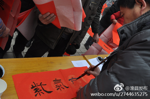 春节临近,春联成为人们购置年货的主要内容之一,为了让群众过一个文明祥和的春节,县文化馆提前购置了笔墨纸砚,邀请县内知名书法家,为我县市民群众义写春联,不到两个多小时,书法家就义务书写春联200余幅,不但让大家真切享受到文化惠民带来实惠,也为新春佳节营造了欢乐祥和的浓厚氛围。
