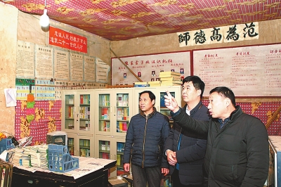 1月3日,丁杰(中)在村办小学了解新教学楼筹建进展情况。 本报记者邓放摄