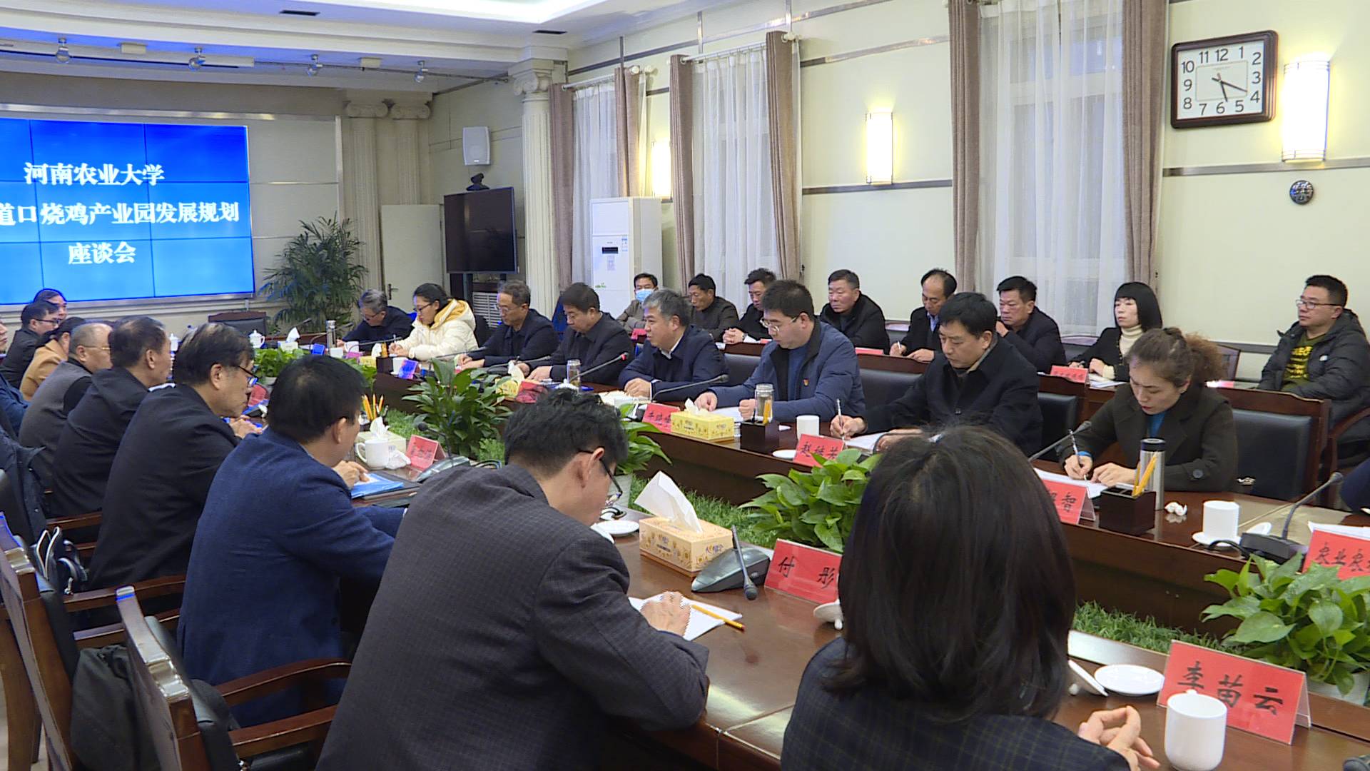 县委常委、县委办公室主任牛晓峰主持会议;副县长郑进武与河南农业大学有关负责人进行签约。会上,河南农业大学专家教授与我县道口烧鸡协会及企业负责人就烧鸡产业发展规划进行了探讨交流。