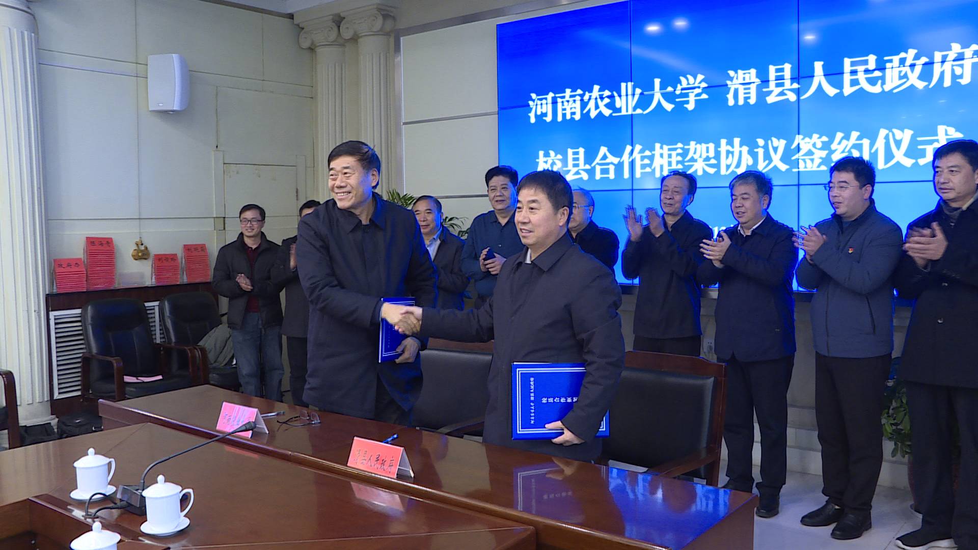 12月13日,河南农业大学与滑县人民政府校县合作框架协议签约仪式暨河南农业大学、滑县道口烧鸡产业园发展规划座谈会举行。河南农业大学党委书记魏蒙关,县委书记陈忠,县领导牛晓峰、郑进武、赵继芳、宋培哲参加活动。