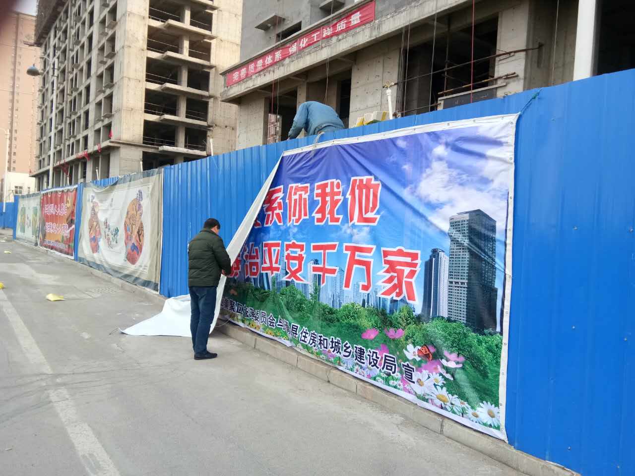 按照“属地管理、分级负责”的原则,县产业集聚区抽调专门人员会同住建局安全站,对辖区主干道在建房地产项目围挡设置情况进行拉网式排查,针对设置不规范、画面破损、宣传版面单一等现象进行记录备案,并责令施工单位立即整改;对新开工工地提早介入,提前对接,按要求严格实施。同时成立专项工作督查组,对存在问题的工地依法处罚。活动期间,查处违规破损围挡工地10处,督促修复破损围挡1000余米,新增公益广告2500平方米。
