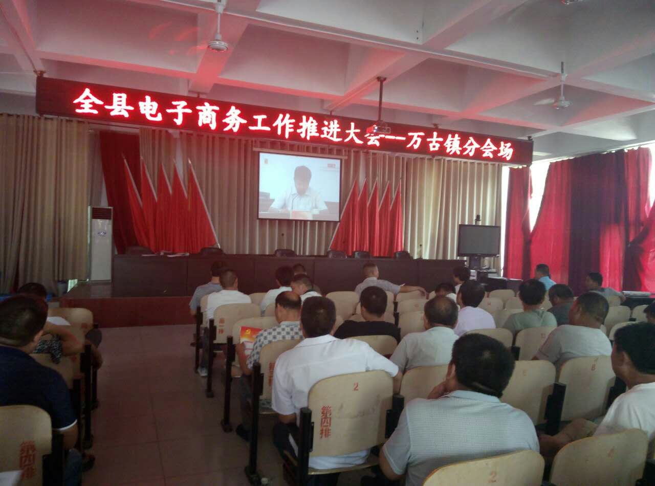 8月3日上午,万古镇组织机关全体干部、各行政村“村两委”班子成员全体,在政府大会议室集中收听收看了全县电子商务工作推进会议实况直播。
