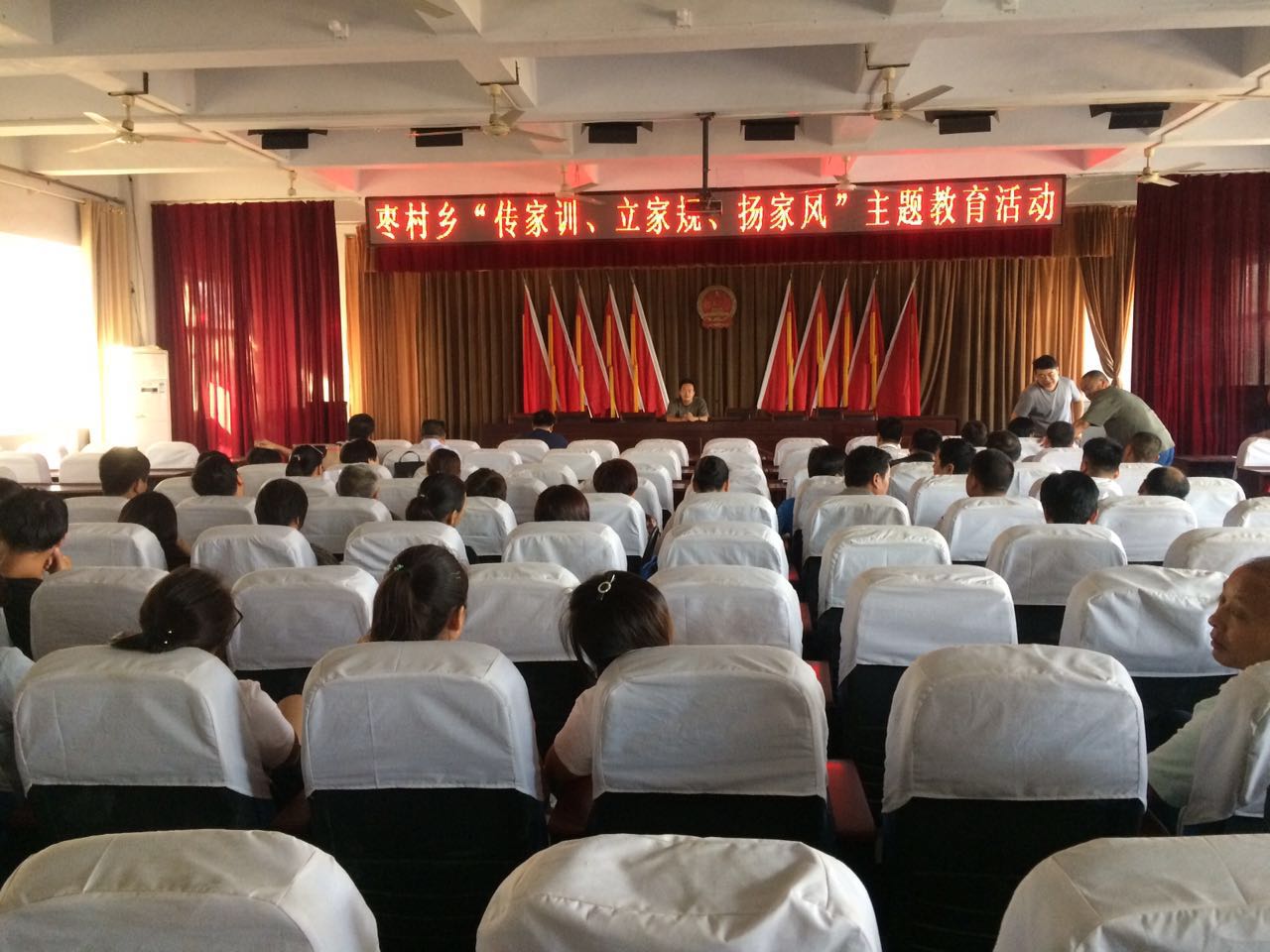 9月20日,枣村乡组织全体机关干部职工,在大会议室开展“传家训、立家规、扬家风”主题教育活动,该乡机关全体干部职工参加此次活动。