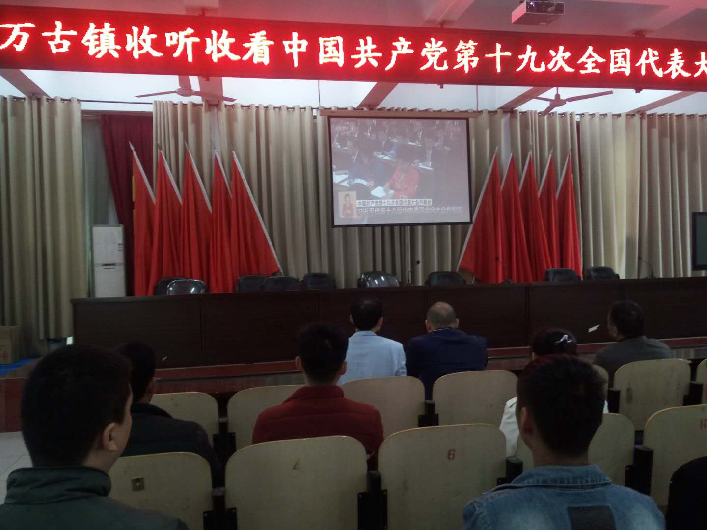 10月18日上午,万古镇组织机关全体党员干部在政府大会议室,集中收听收看了中国共产党第十九次全国代表大会。