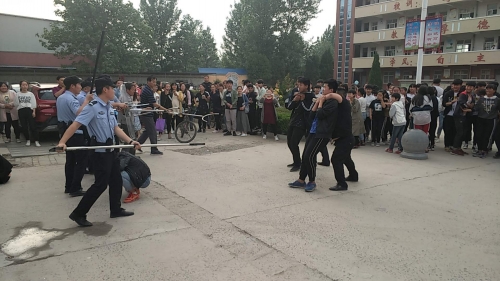 为确保演练活动有效、有序地进行,此次演练由分管政法的乡党委副书记亲自指挥,制定了详细的演练方案,特别邀请县公安局反恐队张红革大队长现场指导。首先由公安民警对各个学校安全负责人进行防火防暴器材使用方法演示和培训,然后开展防火紧急疏散演练,最后开展防暴演练。防暴演练从不明分子借机进入校园大门开始,由学校门岗值班人员利用防暴工具进行阻挡并拨打电话通知校领导和报警、派出所民警迅速赶往现场对不明分子进行控制、救护车及时护送伤员等内容组成。