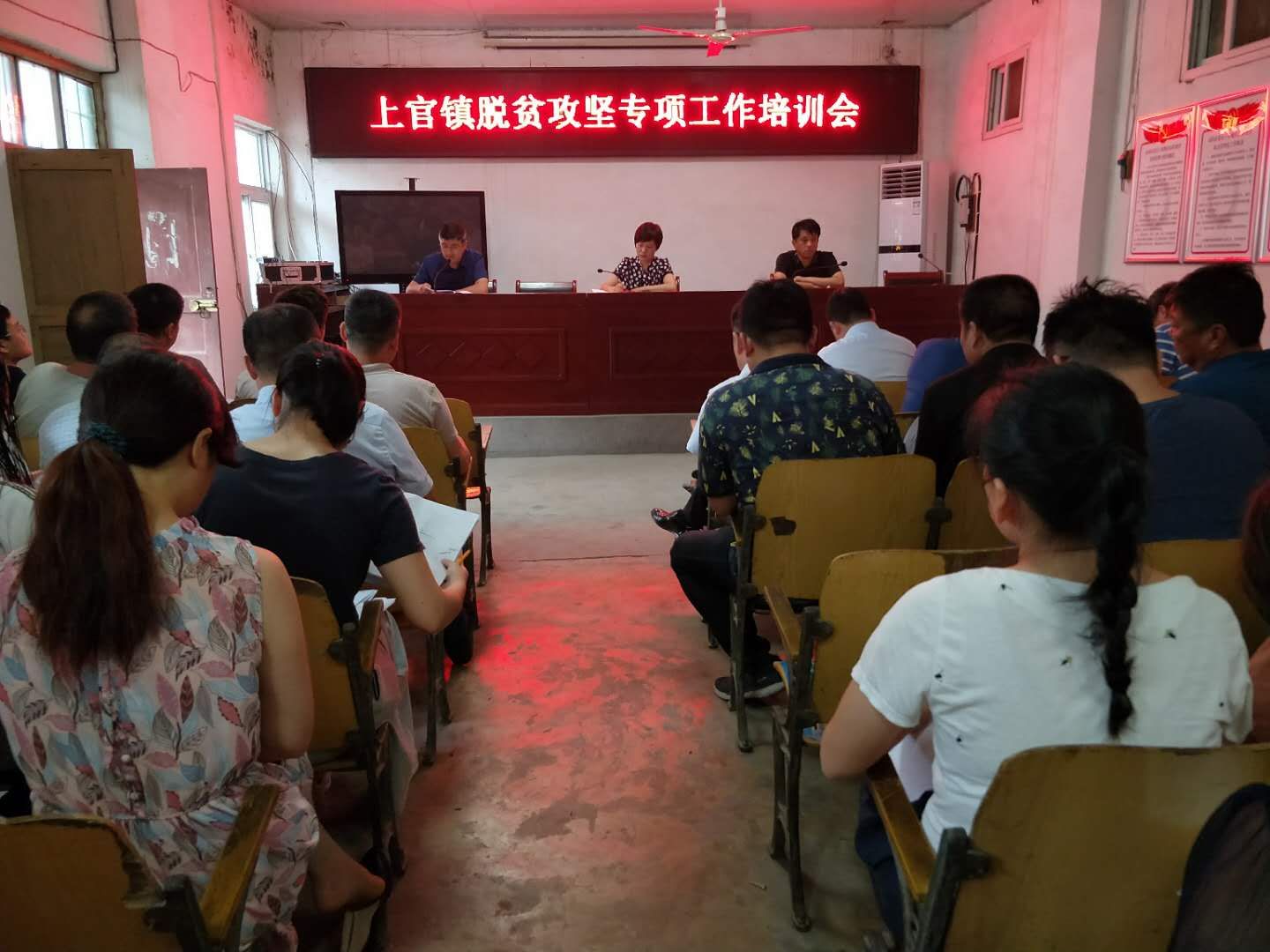 7月9日,上官镇召开脱贫攻坚工作专项培训会,驻村第一书记、镇直部门负责人、全体机关干部参加会议。
