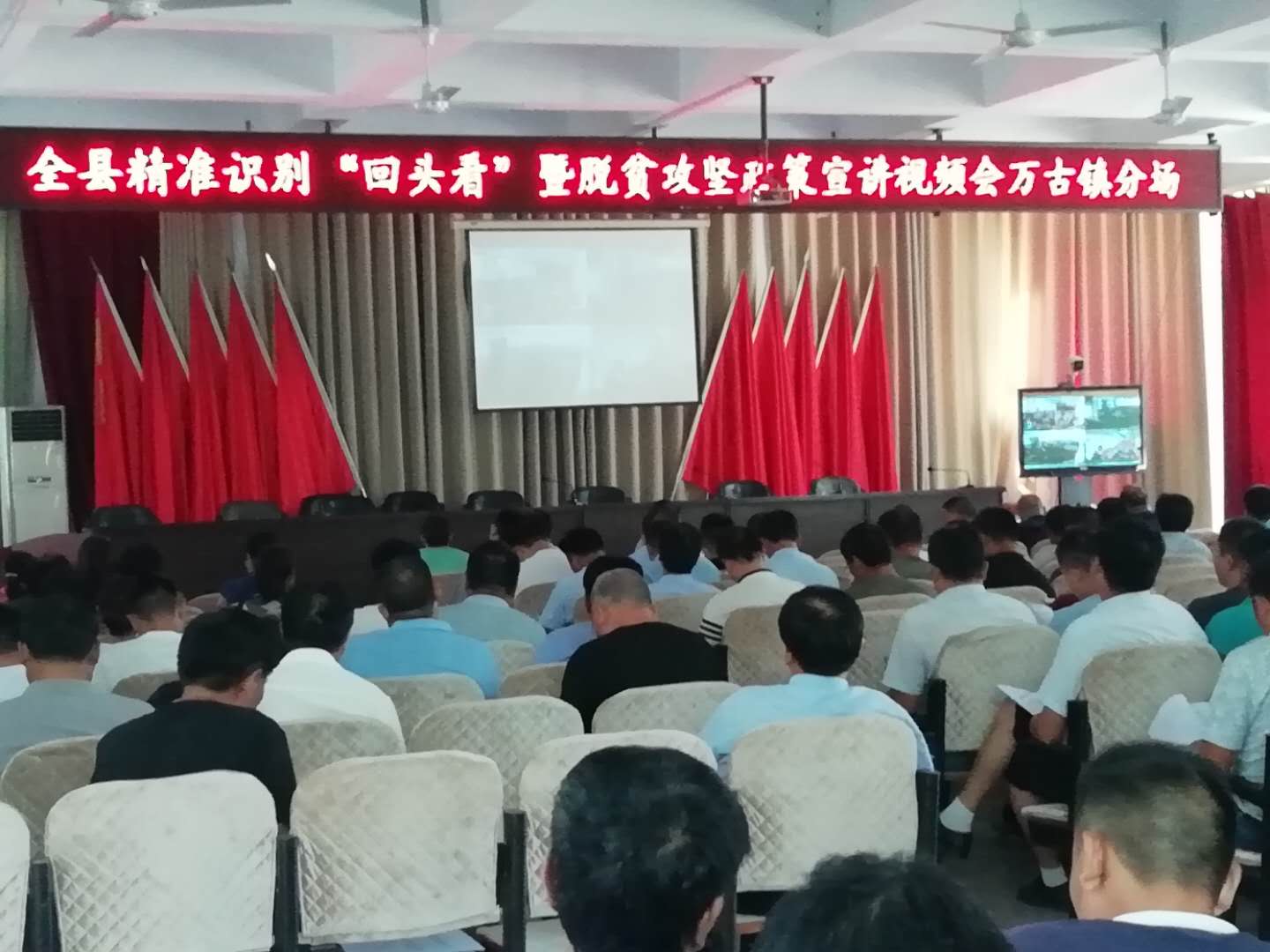 日前,万古镇组织机关全体党员干部、驻村第一书记全体和各行政村“村两委”干部等共计260余人在镇政府大会议室集中收听收看了全县精准扶贫“回头看”暨脱贫攻坚政策宣讲视频会。