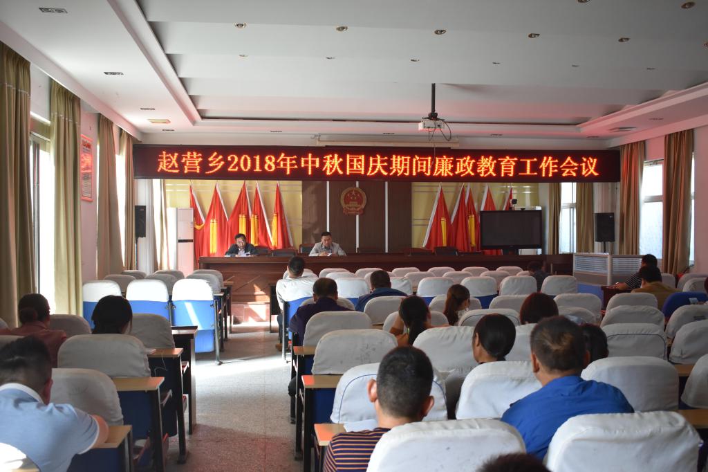 国庆节、中秋节将至,为深入贯彻落实省、市、县纪委有关部署要求,继续紧盯重要节点,纠正“四风”,推动中央八项规定精神落地生根,赵营乡召开廉政教育工作会议,全体机关干部参加了会议。
