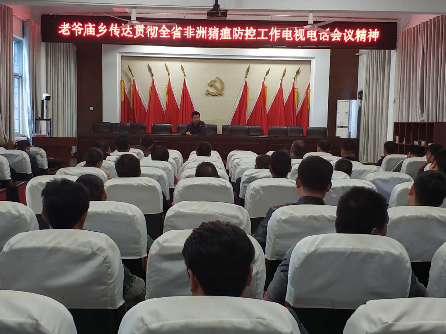 老爷庙乡召开紧急专题会议,传达省、市、县三级会议精神,部署防控措施,加强对猪瘟疫情的排查及控制。