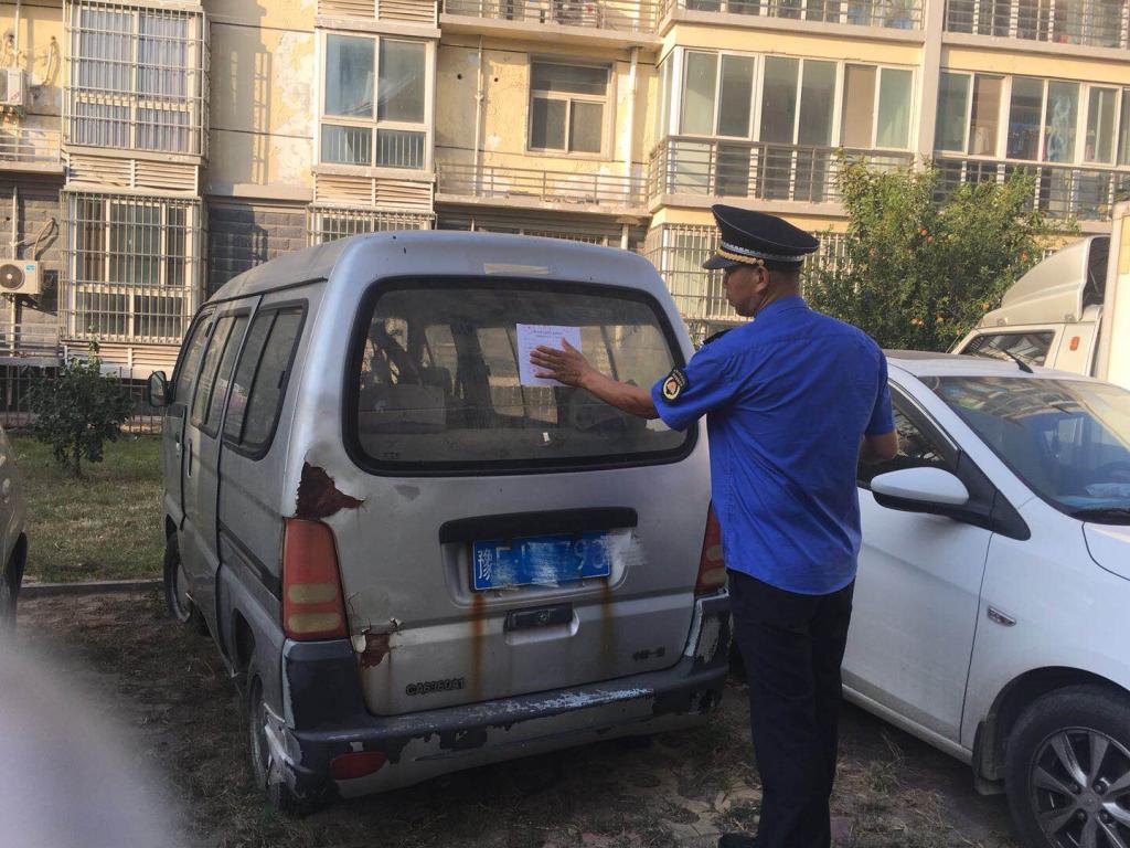 综合执法人员在清理“僵尸车”行动中,摸排“僵尸车”重点分布领域,对悬挂车辆牌照的,通过查询车辆车主相关信息联系车主,要求其限期挪走;对有车牌但是联系不上车主的车辆,或未悬挂号牌、有违停、过检、报废等情况的车辆,通过在公安内网查询,并以短信形式,通知车主限期接受处理;对无法取得联系的“僵尸车”车主,统一粘贴告知书,通知车主尽快认领,逾期将按照规定作强制报废处理。截止目前,共清理“僵尸车”36辆。