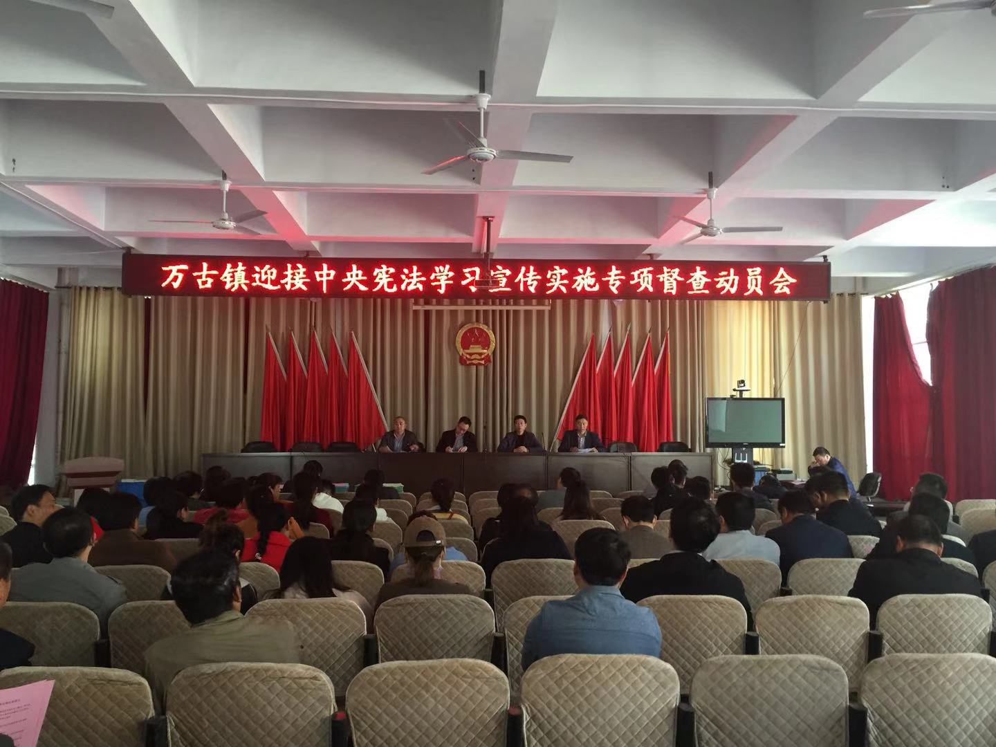 10月24日上午,万古镇迎接中央宪法学习宣传实施专项督查动员会在镇政府一楼大会议室召开,万古镇全体机关干部参加会议。