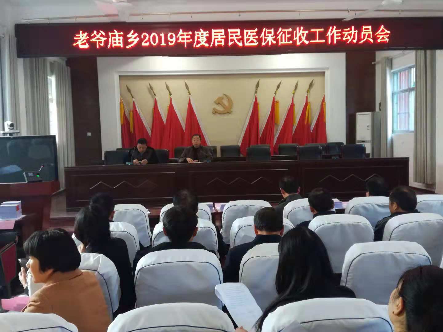 11月15日,老爷庙乡召开2019年度居民医疗保险征收工作动员会,安排部署医疗保险征收工作,全体机关干部、59个村支书、会计、村医参加了此次会议。