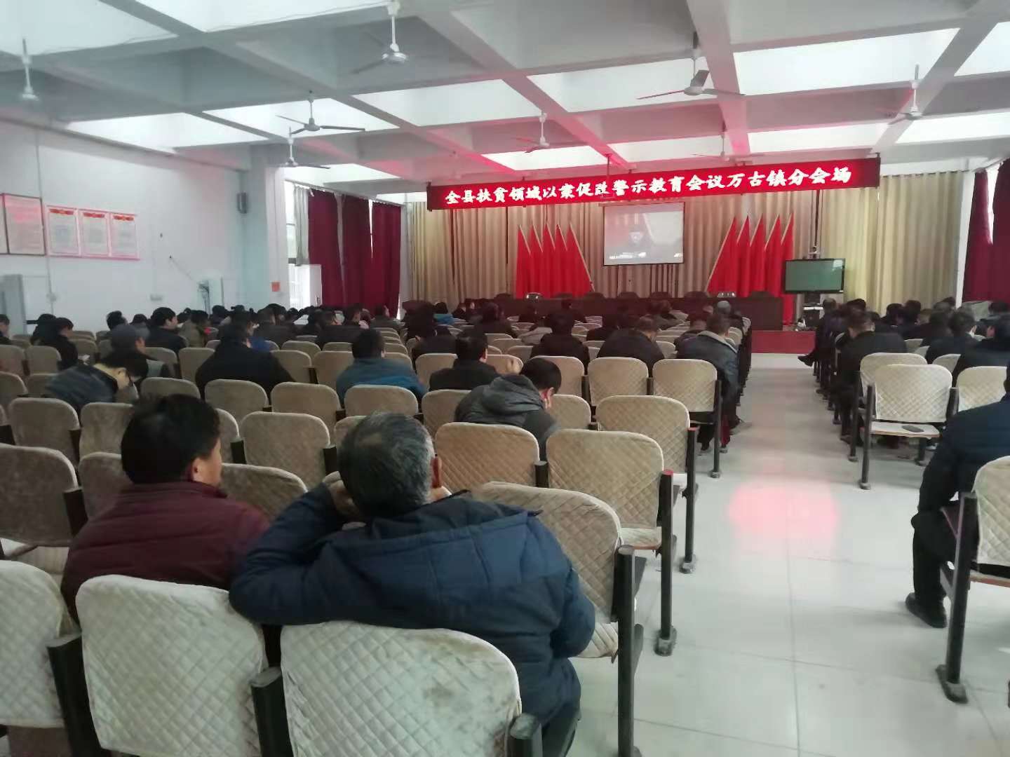 11月30日上午,万古镇组织机关全体党员干部、各村驻村第一书记和各村“村两委”全体干部在政府大会议室集中观看了警示教育片——《斩断伸向扶贫资金的黑手》。