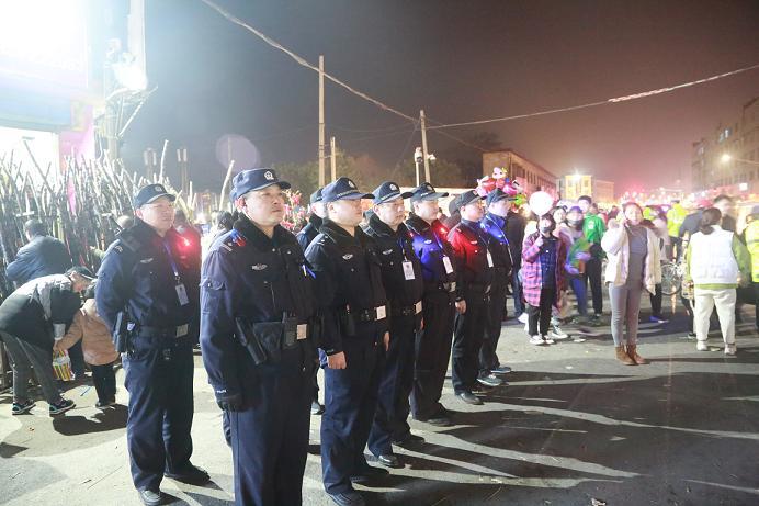 为确保正月古庙会顺利进行,维护群众生命财产安全,预防发生拥挤、踩踏等意外事件和交通、火灾事故,道口派出所按照“最强责任担当、最严工作措施、最佳精神状态”安保工作总要求,采取“定岗、定人、定职责”三定措施,认真总结往年的经验和教训,组织全体民警、辅警携带单警装备到各自分包路段上岗执勤。