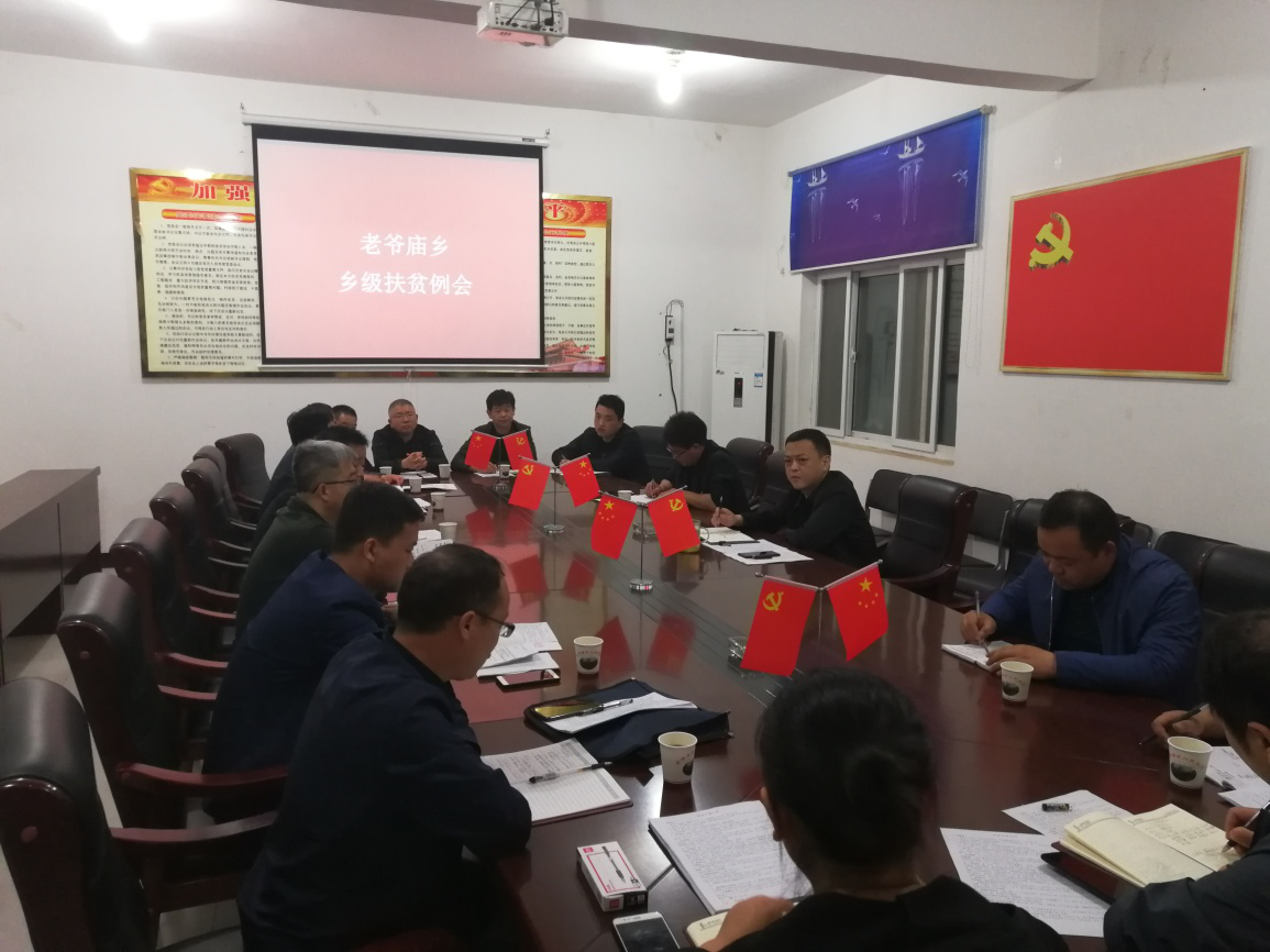 今年是脱贫攻坚关键之年,为全面打赢做好全乡脱贫攻坚工作特别是贫困村的脱贫工作,近日,老爷庙乡组织全体机关干部、贫困村驻村第一书记在党委会议室召开了扶贫例会。