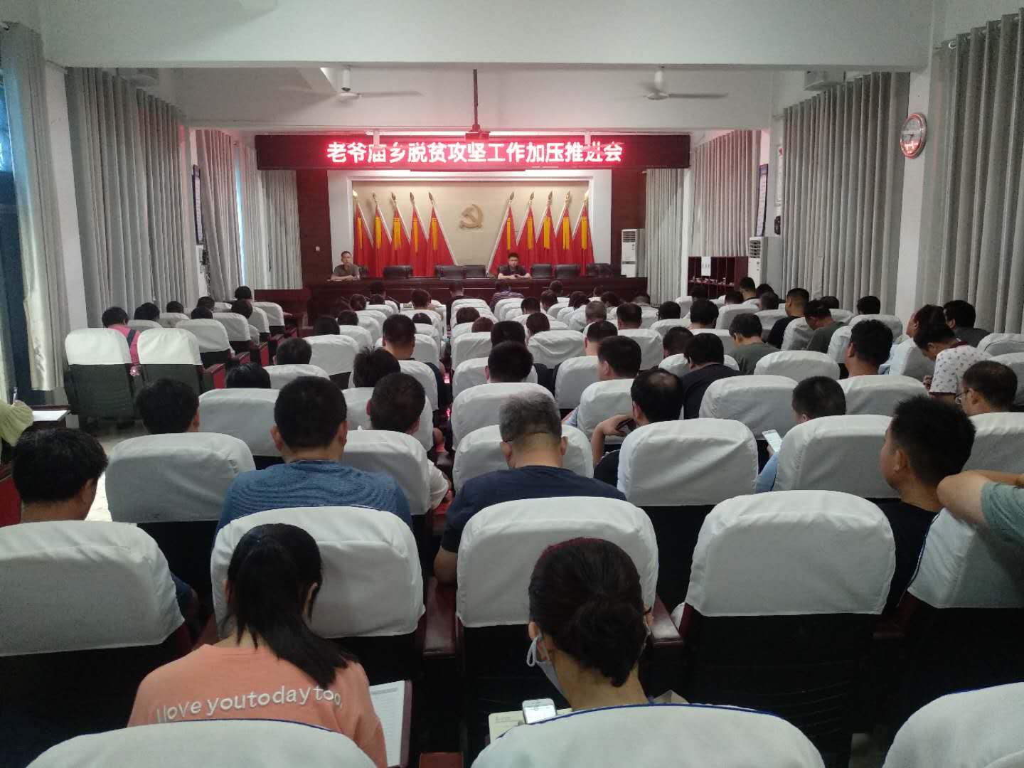6月28日上午,老爷庙乡组织全体机关干部、第一书记、村支部书记召开脱贫攻坚工作加压推进会,详细安排部署下一步工作。