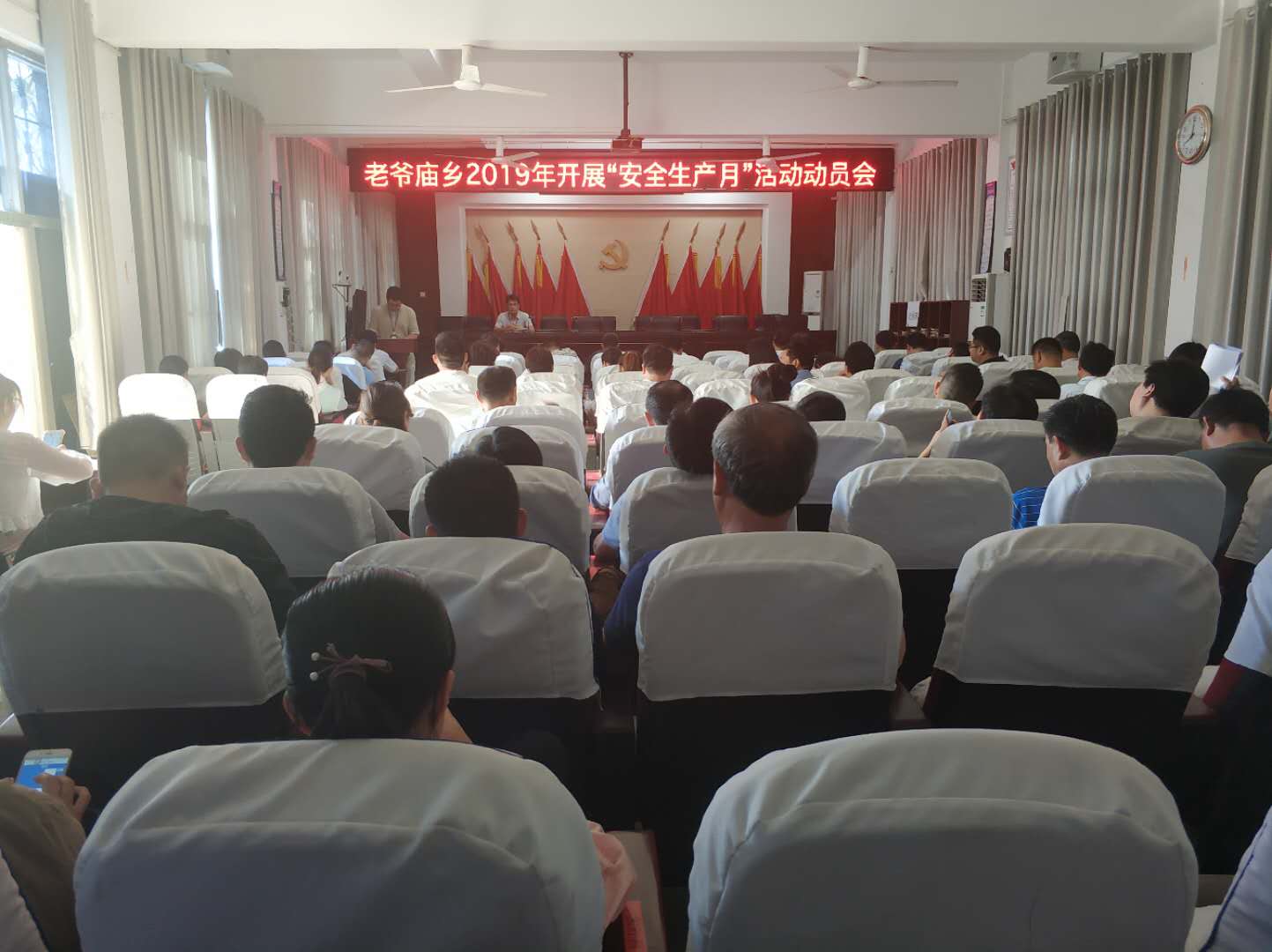 6月4日上午,老爷庙乡积极召开“安全生产月”宣传活动动员大会,全体机关干部、第一书记参加了会议。