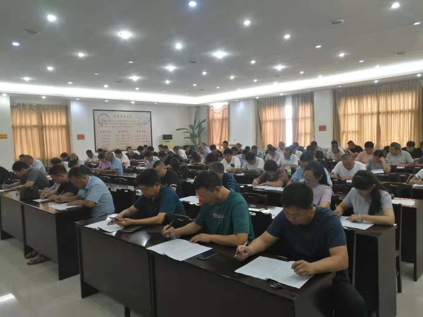 为全面了解帮扶干部对精准扶贫政策知识的知晓程度,切实提高扶贫工作的能力和水平,按照县统一安排,7月30日上午,产业集聚区组织班子成员、驻村第一书记、脱贫责任组长、村两委干部共110余人开展扶贫政策业务知识学习成果测试。