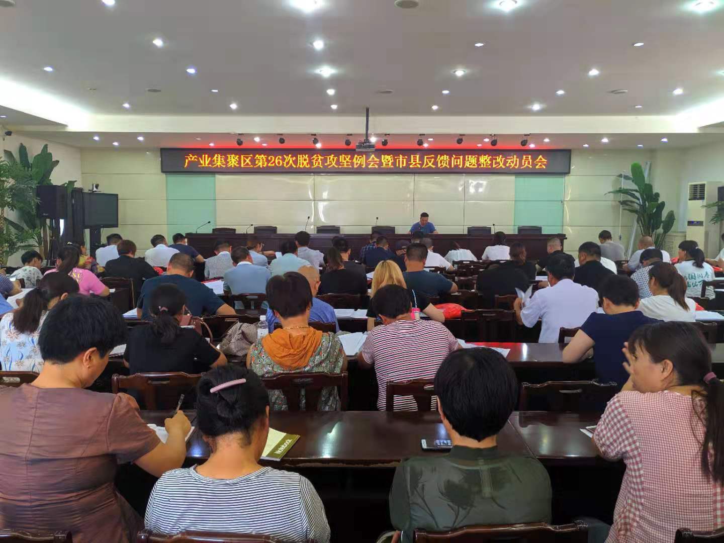 7月22日下午,产业集聚区召开第26次脱贫攻坚例会暨市县反馈问题整改动员会,对近期脱贫攻坚整改工作进行了安排部署,驻村第一书记、各村支部书记及信息员共120余人参加。