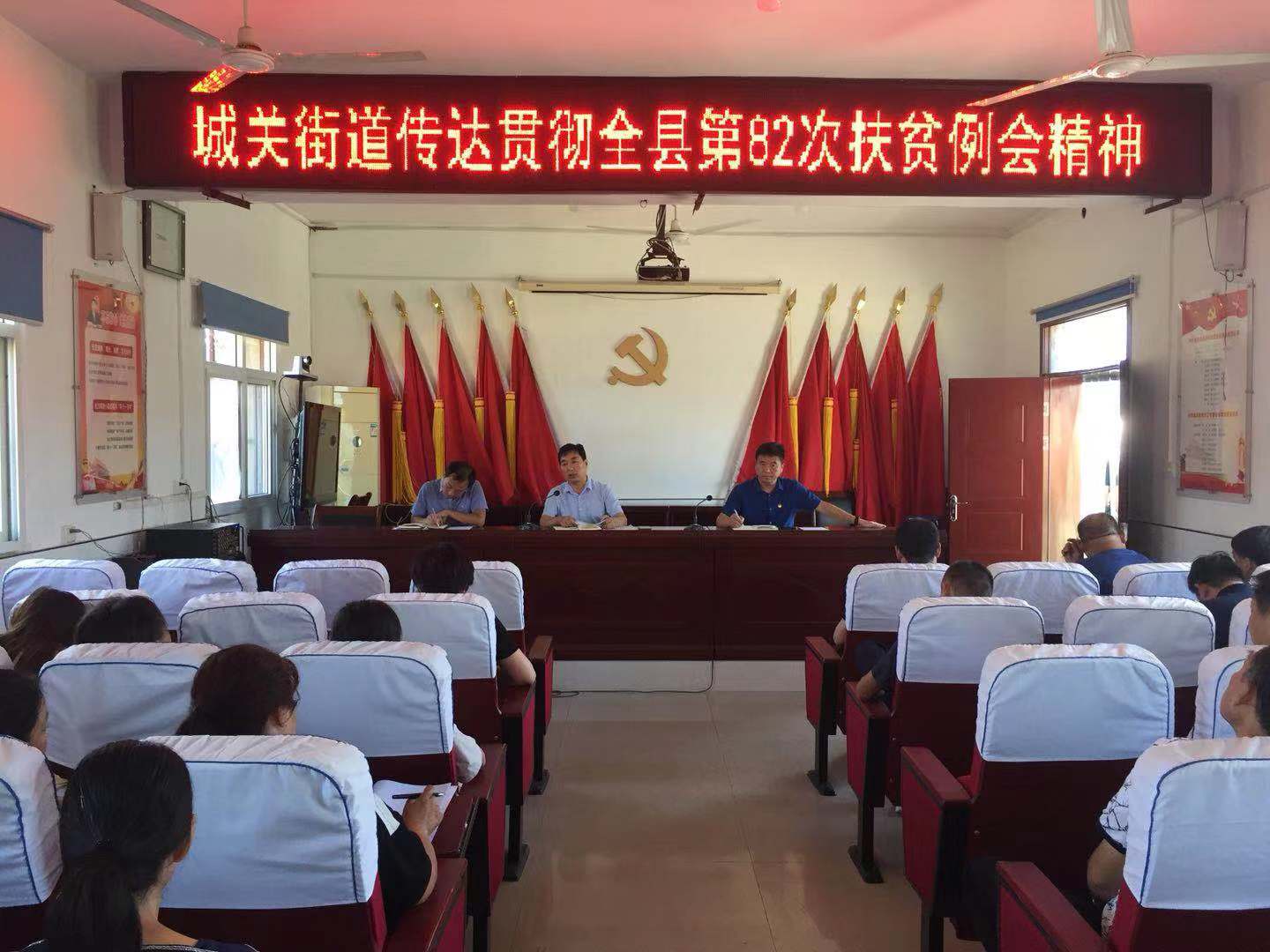 8月29日上午,城关街道组织机关全体干部职工、驻村第一书记召开了专题会议,传达贯彻全县第82次扶贫例会精神。