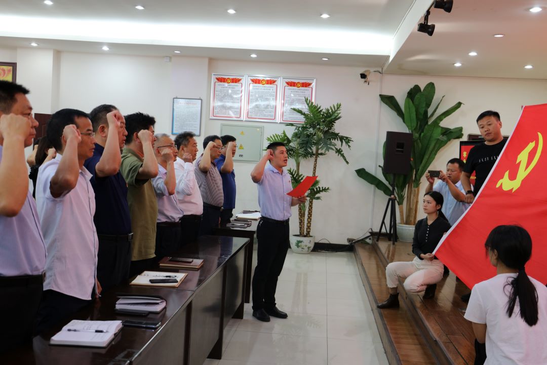 党课结束后,广大党员庄重严肃的举起右拳,面对党旗,重温了入党誓词。这次主题党课和重温入党誓词,使广大党员干部思想备受触动、精神更加鼓舞、干劲有效激发,纷纷表示,要按照“不忘初心、牢记使命”主题教育要求,强化宗旨意识,牢记使命担当,全心全意为人民服务,以更加饱满的热情推动各项工作。