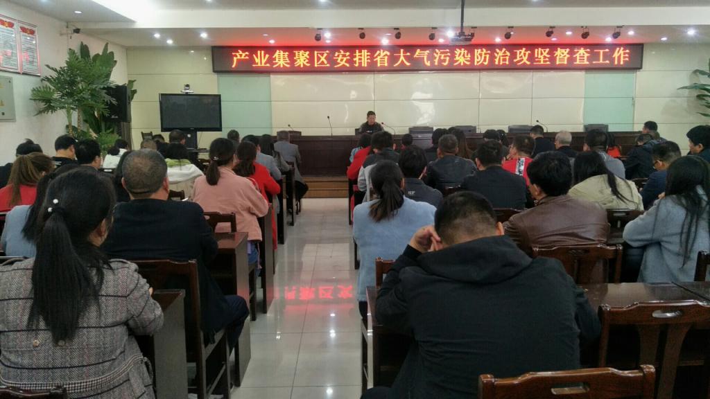 会议传达省大气污染防治攻坚督查工作的会议精神,产业集聚区经济发展局局长刘会强就下一步工作提出要求:一是认清形势,持续开展大气污染防治攻坚工作,环保问责力度不断加大,环境治理整改时限标准越来越严格;二是细化工作任务,推动各项攻坚重点任务落实和空气质量持续改善,对环保突出问题整改任务进行部署,强化环保管控、应急管控措施;三是落实到位,找准突出问题和短板,进一步压实责任,守住底线,不触红线,确保全省大气污染防治攻坚任务取得实效。