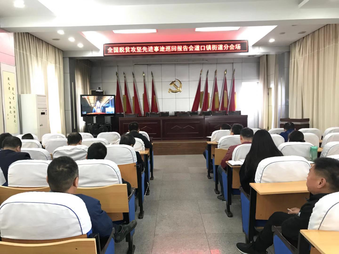 10月25日,道口镇街道组织收听收看全国脱贫攻坚先进事迹巡回报告会。道口镇街道班子成员、脱贫攻坚责任组组长、驻村第一书记、各村支部书记及街道扶贫办工作人员等30余人收看了报告会。