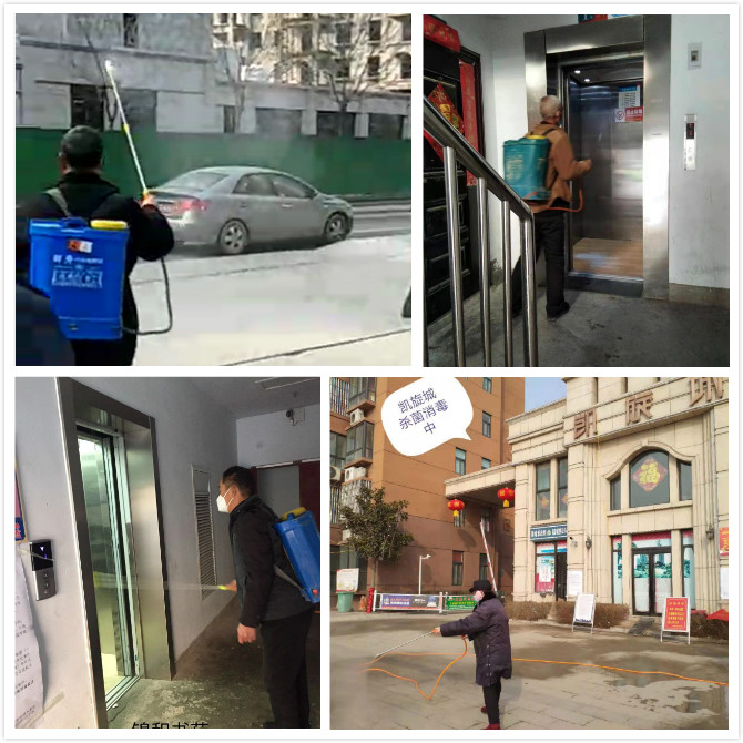 各商住小区物业、各村两委做好针对疫情的相关防控部署和处置工作;积极做好清洁与通风工作,保障所居环境整洁干净;加大对各区域垃圾清收频次,定时对房屋、楼道、地库进行通风;做好重点部位消毒工作,消杀人员佩戴口罩、手套等,手持消毒喷壶,对房屋周边、电梯、公共通道的门把手、开关、按键等公共场所及重点区域进行了全面消毒,力争不放过一个卫生死角。同时,为加大疫情防控宣传力度,消杀过程中要求辖区超市、门店及小区居民做好日常消毒预防,最大限度抓好防控,切断病毒传播渠道,保障人民群众健康安全。