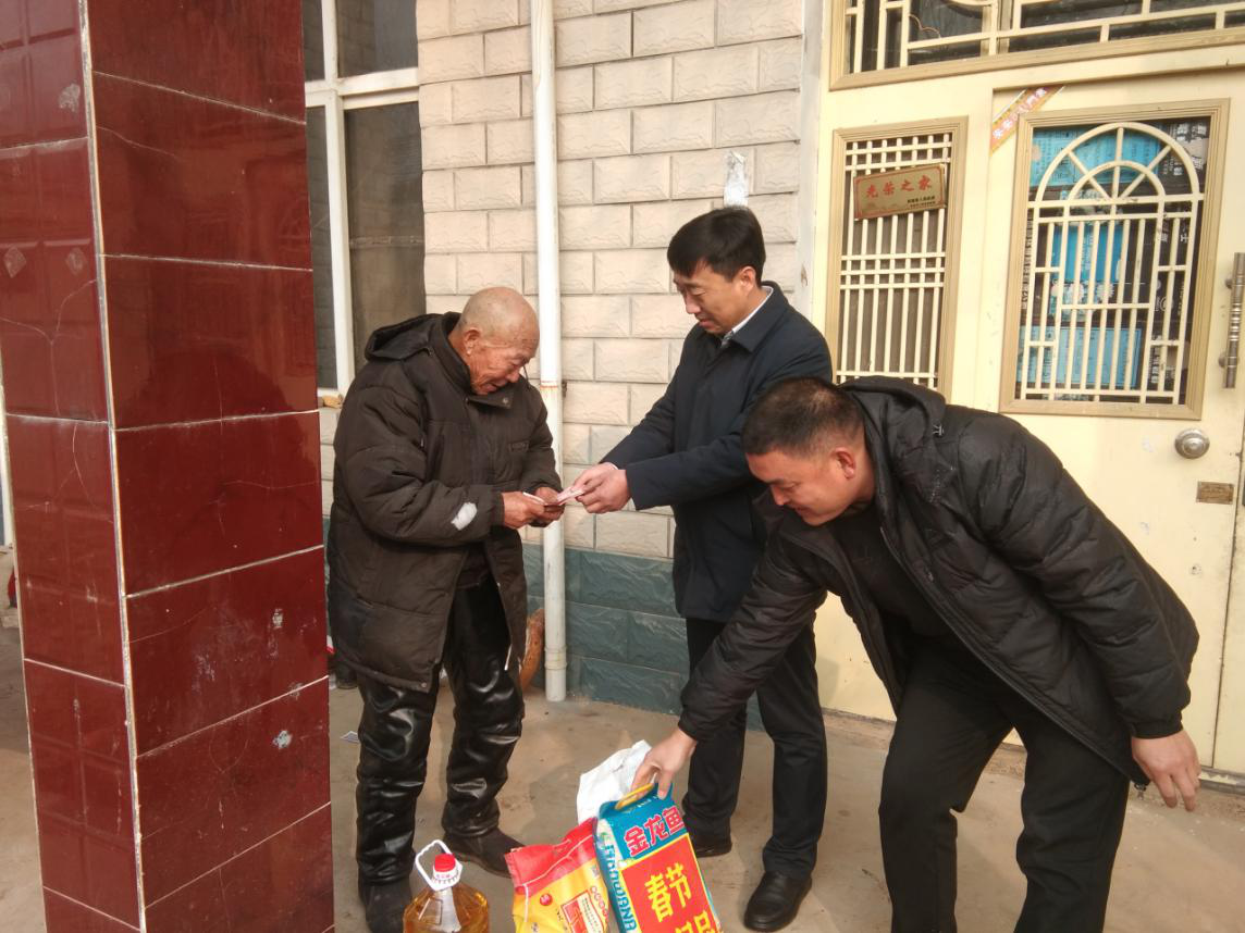 2020年春节来临之际,瓦岗寨乡党委书记、党委副书记、民政所长等一行对瓦岗寨乡优抚对象、百岁老人以及困难群众等代表进行走访慰问,为他们送去慰问金、慰问品和节日的祝福。