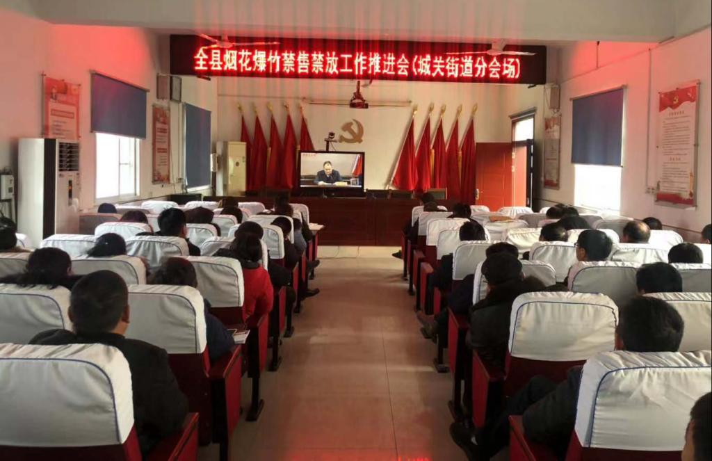 春节前夕,为进一步巩固我街道烟花爆竹禁放成效,改善区域环境空气质量,保障人民群众生命财产安全。1月13日下午,城关街道组织机关全体干部、镇直部门负责人及村支部书记120余人,在机关二楼会议室认真收听观看了全县烟花爆竹禁售禁放工作推进会。