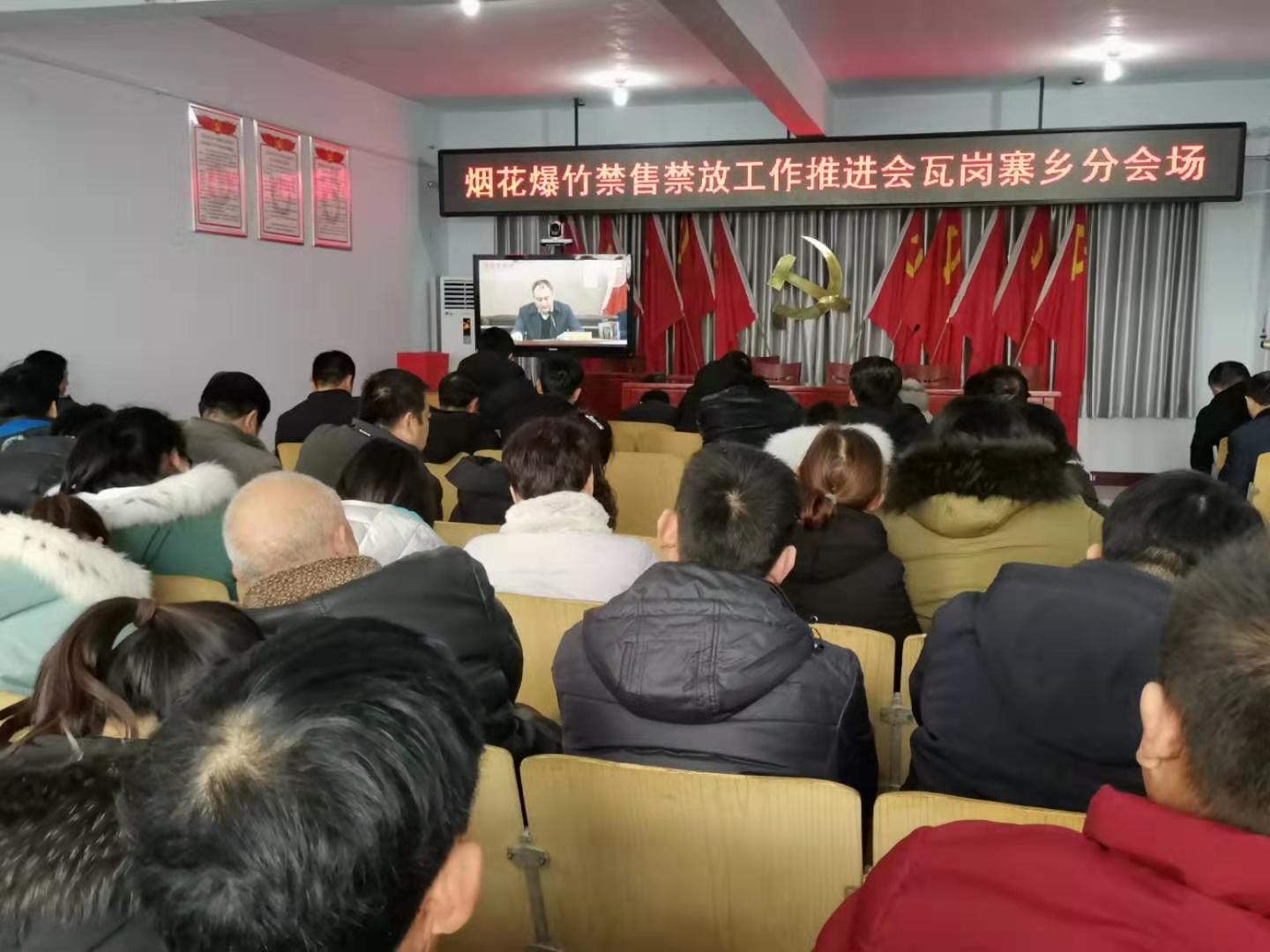 1月13日下午,瓦岗寨乡组织收看全县烟花爆竹禁售禁放工作推进电视会议,瓦岗寨乡全体机关干部、乡直部门负责人、各中小学校长及村支两委全体成员在瓦岗寨乡政府五楼会议室参加会议。