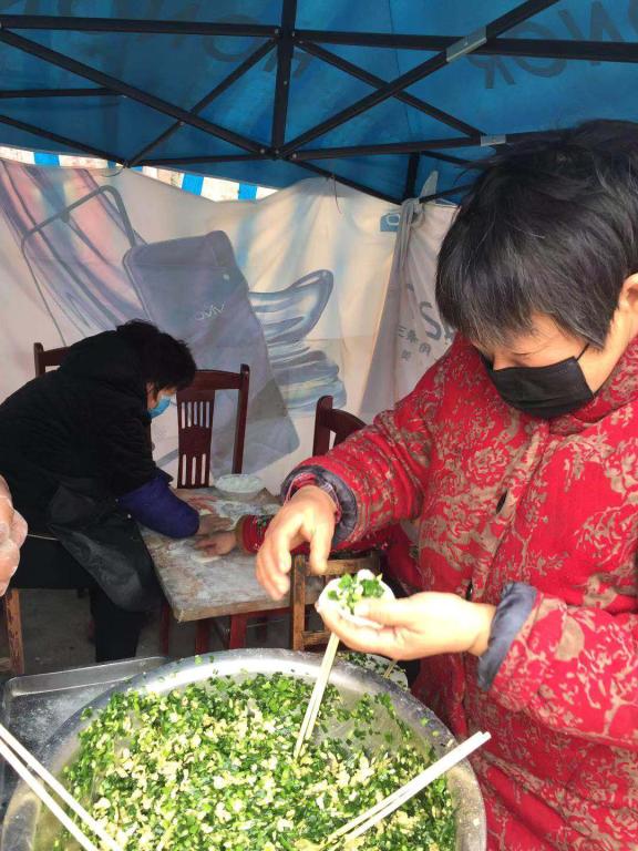 自疫情防控工作部署以来,寺台村各卡点执勤人员逆险而行,用坚守保护村民们的健康。村民都占伟看到执勤人员如此辛苦,他十分感动也很心疼,这几天他一直给执勤人员提供热粥和热水。明天就是元宵节了,他和几个邻居商量后,决定用自己亲手包的饺子让这些在抗疫一线坚守的战士们过一个不一样的元宵节。他们有的出面粉,有的提供饺子馅,有的出人工,直接将厨房搬到了执勤点。大家一起动手,和面、擀皮、包饺子,在欢声笑语中饺子就下锅了。