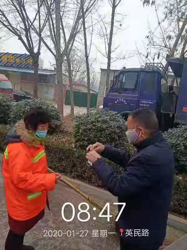 为全面打赢疫情防控阻击战,确保环卫工人生命安全和身体健康,产业集聚区为开展环境卫生清扫保洁和垃圾收集清运工作的环卫工人提供坚强的物质保障!
