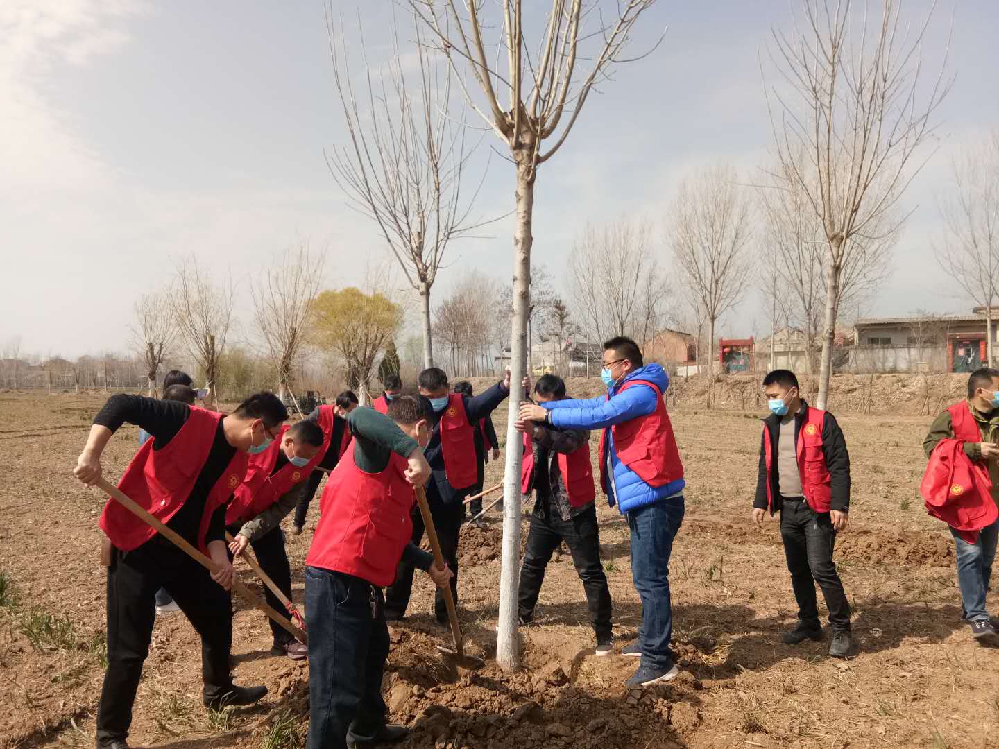 3月12日上午,道口镇街道机关志愿者来到卫河西岸滩区,大家挥锹铲土,修整树坑,在技术人员的指导下,将高高的嫩嫩的树苗载入坑内,扶苗培土、默契配合,齐心协力种下一棵棵树苗,植下一片新绿,以实际行动践行环保理念,为街道绿化做出贡献。