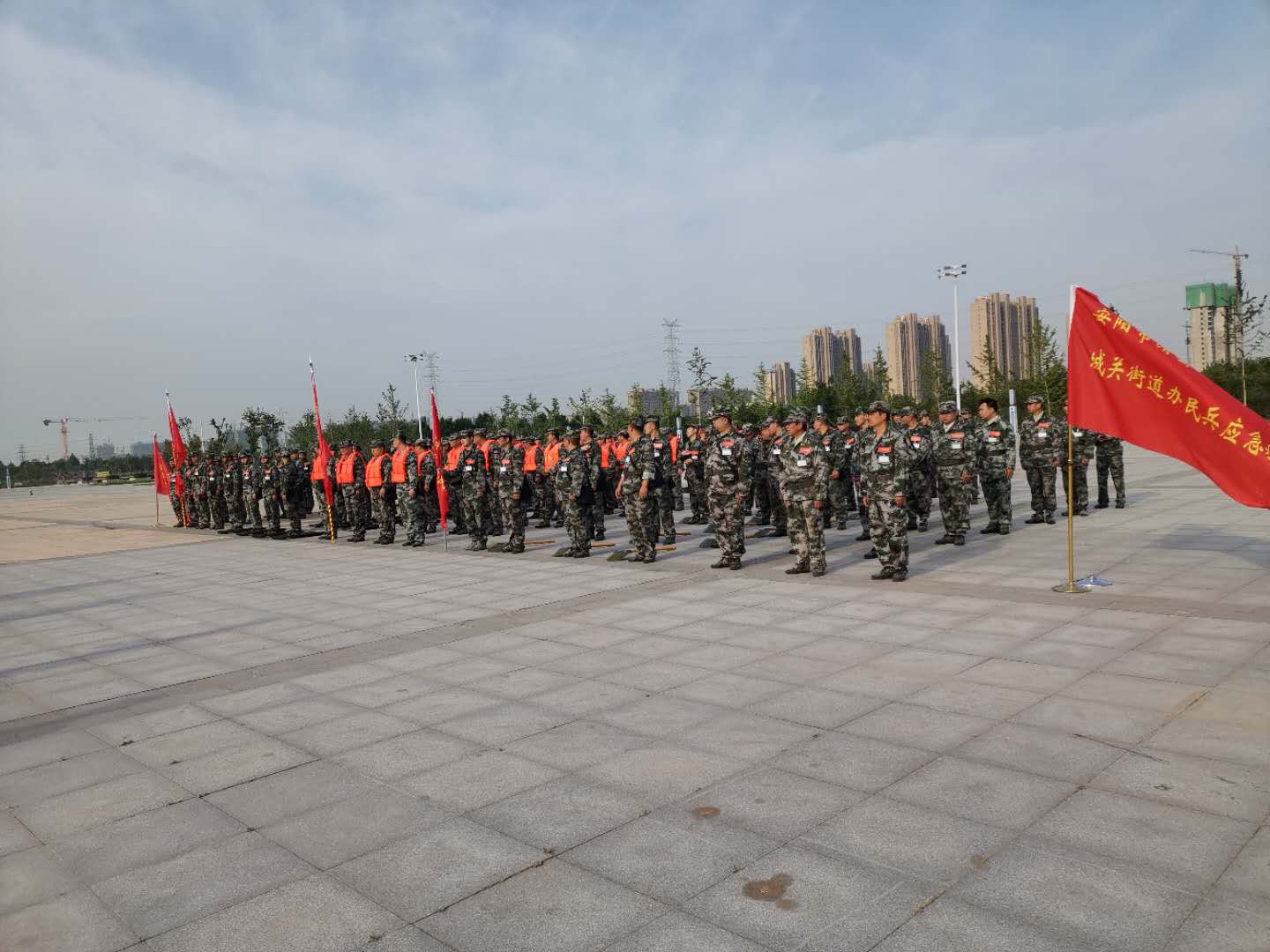 5月20日,城关街道应急连全体集合,在滑县东湖进行反恐维稳综合汇报演练,接受安阳军分区首长检阅。