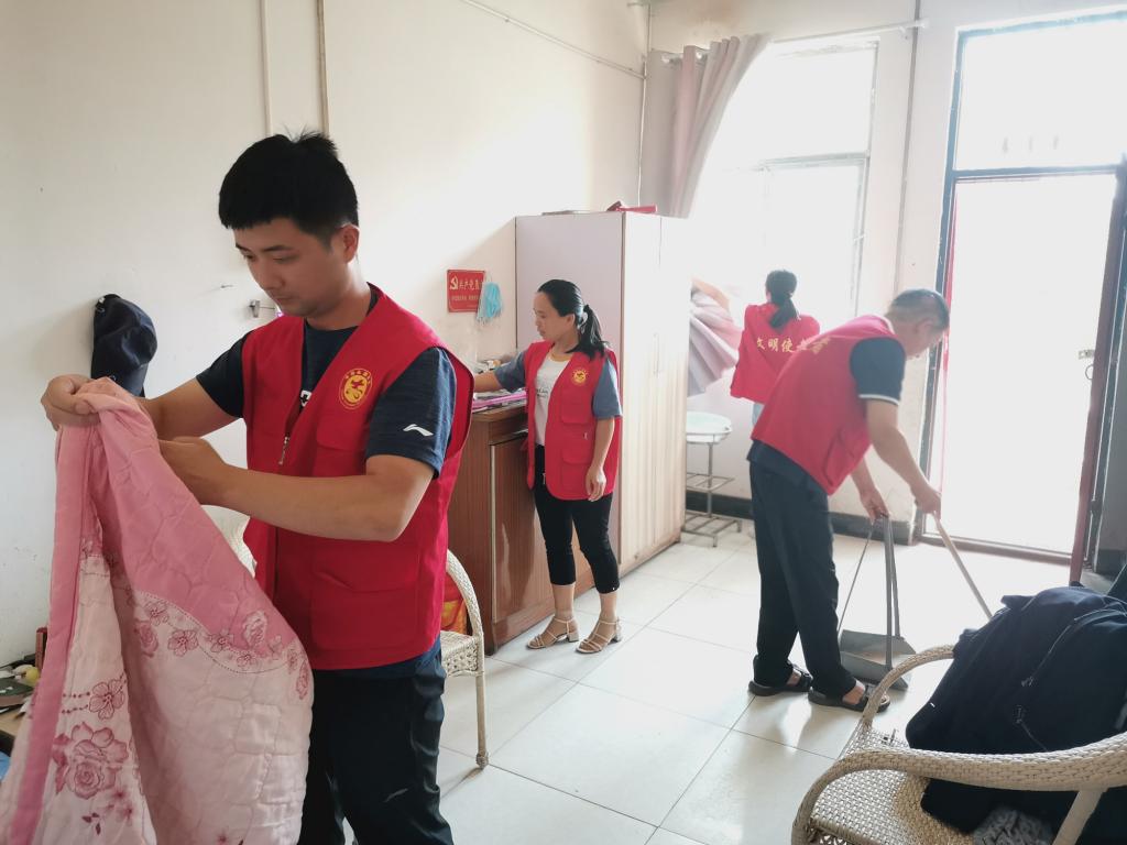 在敬老院里,红马甲志愿者为老人们打扫卫生,叠被子、整理床铺等,详细询问老人们的身体和生活状况,与他们促膝谈心,让他们感受到节日的温暖,并叮嘱敬老院工作人员好好照顾老人。