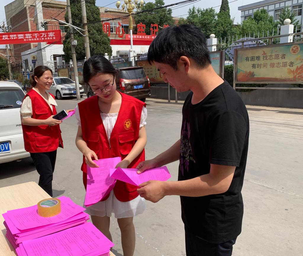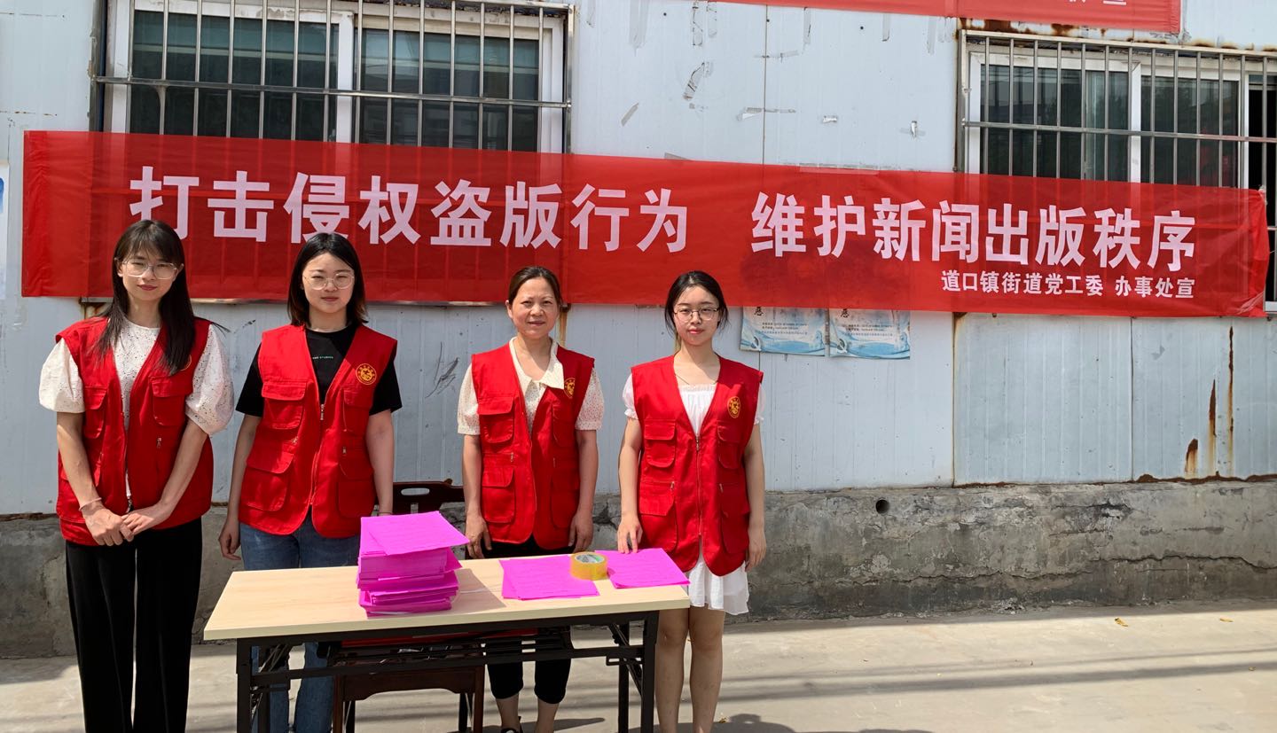 为进一步提升广大群众对“扫黄打非”工作的认知度和支持度,切实夯实“扫黄打非”群众基础,树立健康向上的社会风尚,6月10日,道口镇街道在机关门口开展“扫黄打非”宣传活动。