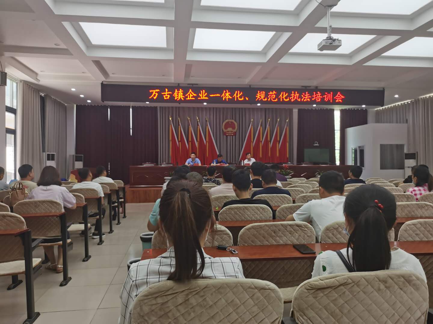 为进一步落实企业环保主体责任,提升企业环保规范化管理能力,6月3日,万古镇邀请县环保监察大队大队长张传钦、中队长陈宝为万古镇50余位企业负责人进行了环保一体化、规范化专题培训。培训会由镇党委委员、武装部长刘丹主持。