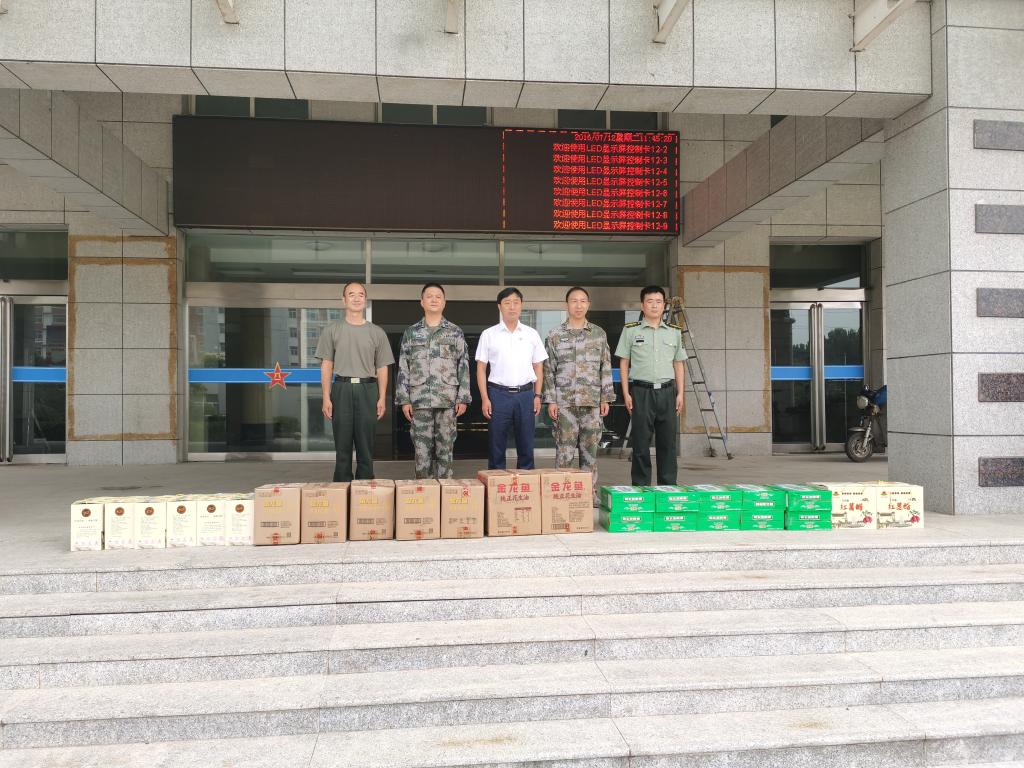 王立铭书记代表瓦岗寨乡党委、政府向县武装部全体官兵送上节日的祝福和诚挚的问候,并送上慰问品,感谢县武装部对我乡各项工作的关心和支持。