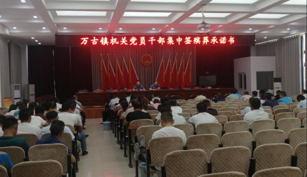 为积极倡导文明、节俭办丧,革除丧葬陋习,树立文明新风,全力助推殡葬改革顺利进行,万古镇充分发挥领导干部职工在殡葬改革中的带头示范作用,8月27日召开殡葬改革专题会,学习会议精神,宣传相关政策,机关干部职工带头签订《文明殡葬承诺书》。