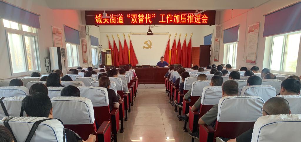 8月18日上午,城关街道组织全体干部职工召开“双替代”工作加压推进会,对“双替代”工作进行加压部署。
