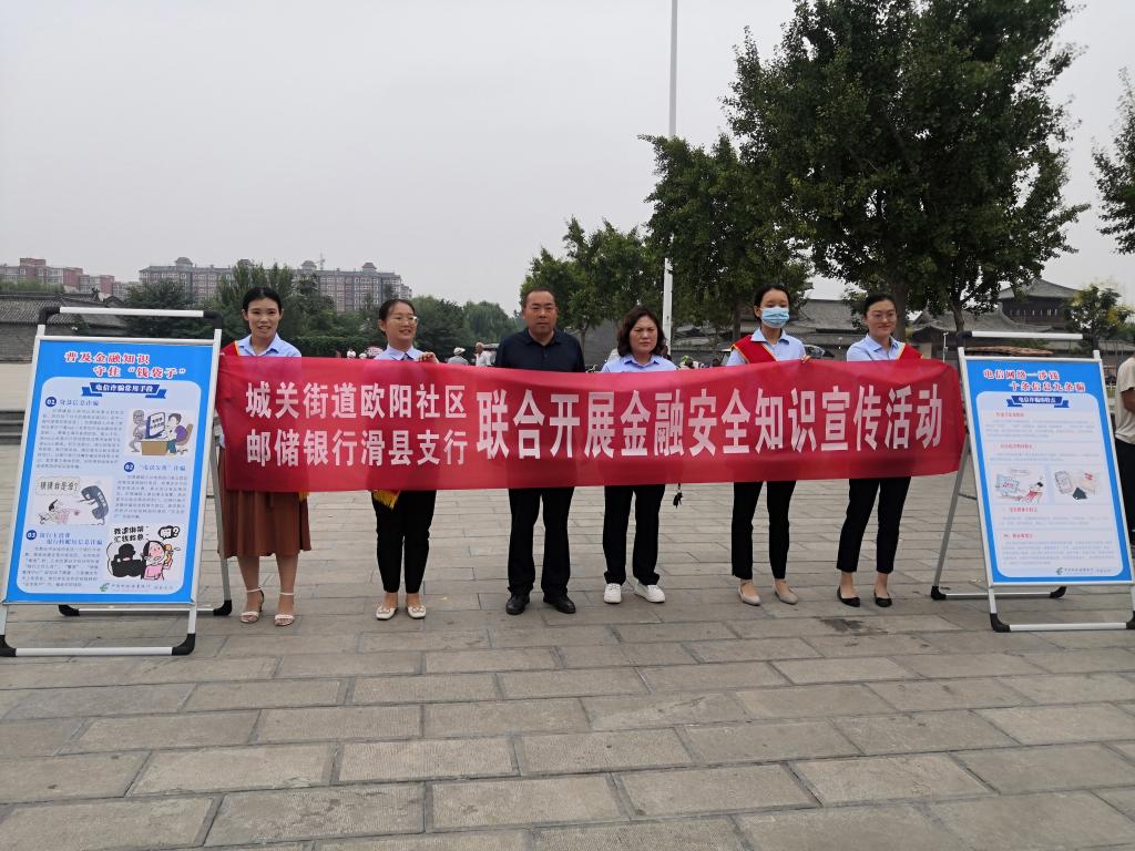 为进一步营造辖区金融安全环境,9月15日上午,城关街道欧阳社区与“结对”文明单位滑县邮储银行在欧阳修广场联合开展金融安全宣传活动。