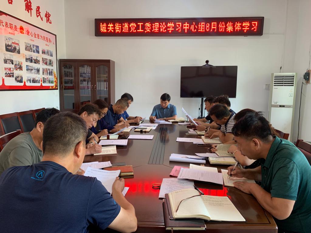2020年8月31日,城关街道党工委组织理论学习中心组成员在小会议室开展了8月份集体学习。