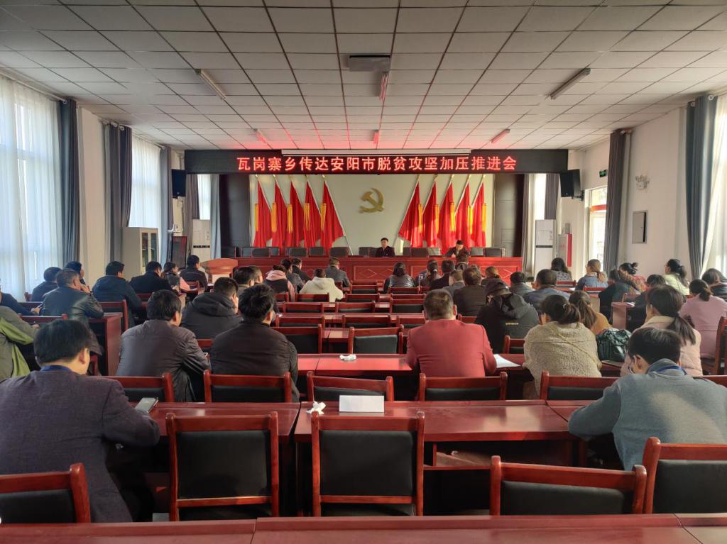 11月11日上午,瓦岗寨乡传达安阳市脱贫攻坚加压推进会议精神,乡机关全体、驻村第一书记等90余人参加会议。会上,党委书记王立铭对全乡脱贫攻坚工作做出了详细的安排和部署,并要求各村要做到硬件软件两手抓,两手都要硬,重点难点在哪里,攻坚就在哪里,不达目的,决不罢休。